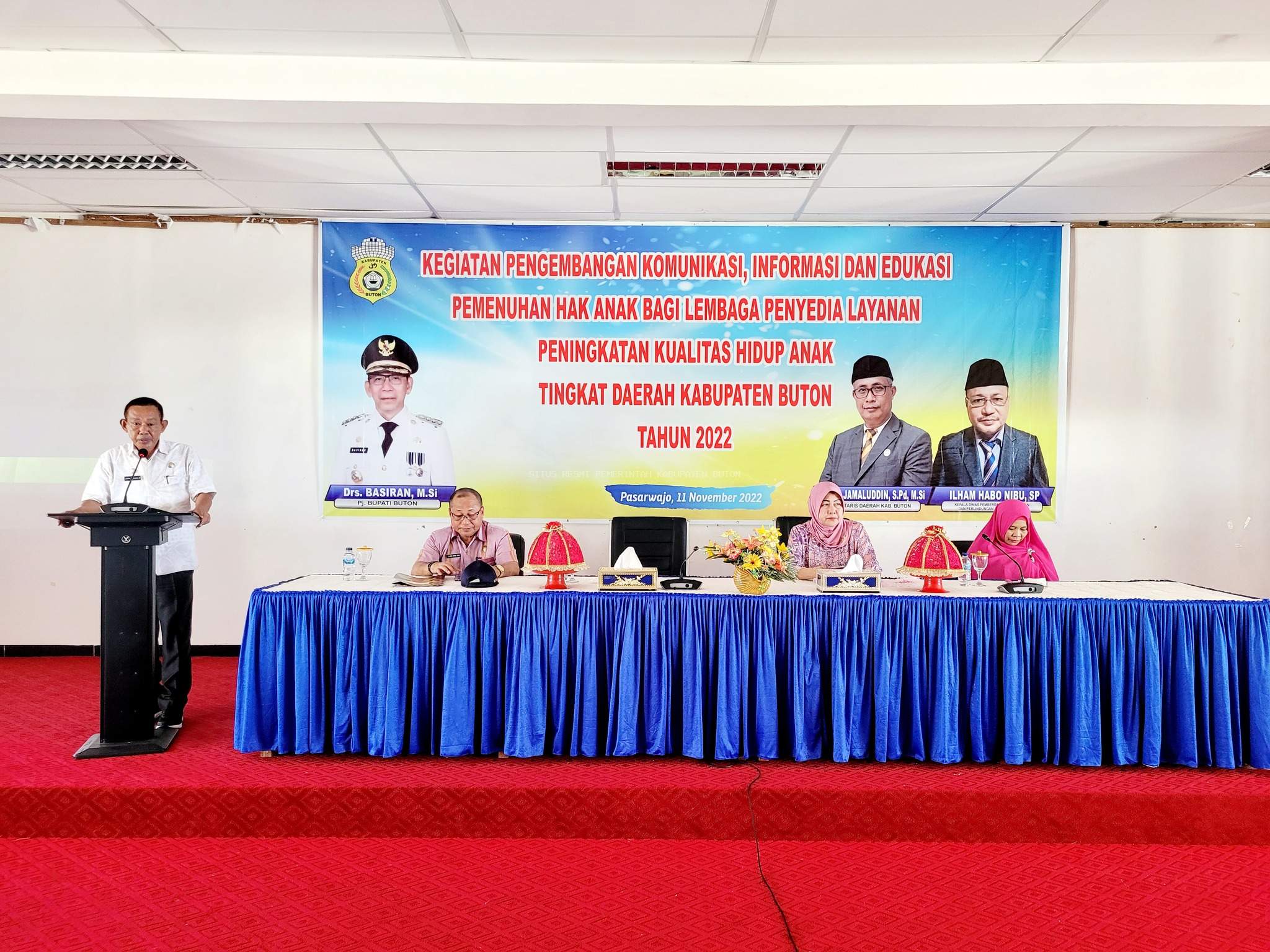 Program Kabupaten Layak Anak (KLA) penting dilaksanakan secara serius, termasuk di Kabupaten Buton. Hal ini disampaikan Pj. Bupati Buton, Drs,. Basiran, MSi melalui Asisten Administrasi Umum Sekda Kabupaten Buton, Drs. La Ode Muhidin Mahmud saat membuka dengan resmi kegiatan pengembangan komunikasi, informasi dan edukasi pemenuhan hak anak bagi lembaga penyedia layanan peningkatan kualitas hidup anak tingkat Kab. Buton tahun 2022. Kegiatan ini diselenggarakan oleh Dinas Pemberdayaan Perempuan dan Perlindungan Anak Kab. Buton bersama Pemprov Sultra di Aula Kantor Bupati Buton, Jumat pagi, 11 November 2022.
