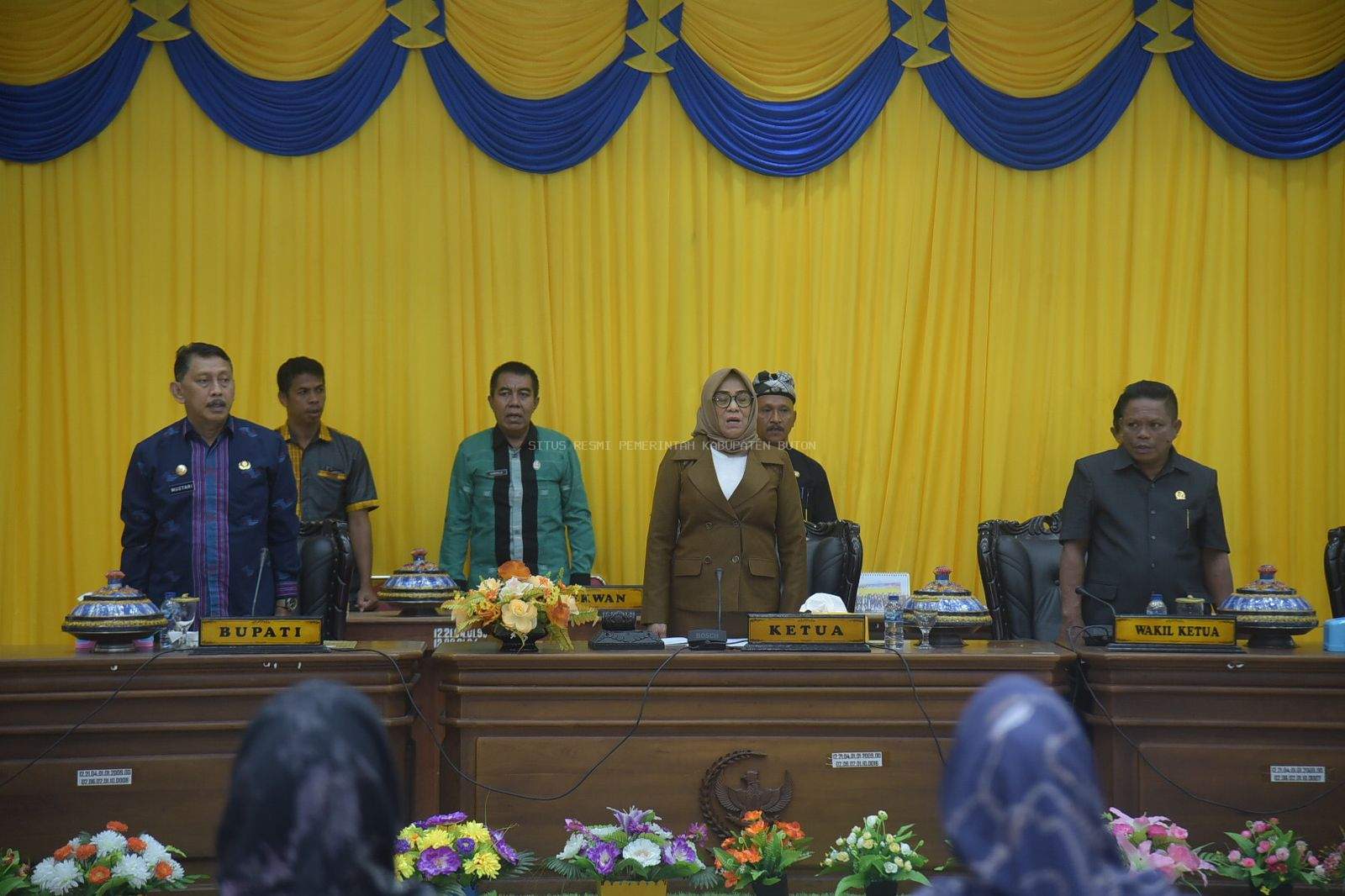 Rapat paripurna DPRD Buton dalam Penetapan Raperda menjadi Perda tersebut dihadiri Pj. Bupati Buton, Drs. La Ode Mustari, MSi. Orang nomor satu di Kabupaten Buton tersebut menghadiri Rapat Paripurna DPRD Kabupaten Buton dalam rangka mendengarkan Penyampaian Jawaban Pemerintah terhadap Pemandangan Umum Fraksi Fraksi DPRD Kabupaten Buton di Ruang Sidang Paripurna DPRD Kabupaten Buton Kamis pagi, 21 September 2023.
