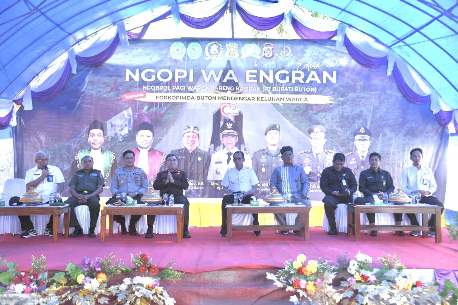 Ngopi Wa Engran (Ngobrol Pagi Warga Bareng Basiran-Pj Bupati Buton) kembali digelar. Berbeda dengan tahun sebelumnya, Ngopi Wa Engran edisi 2023 ini turut melibatkan Forkopimda Kabupaten Buton dengan tema Forkpimda mendengar keluhan warga.