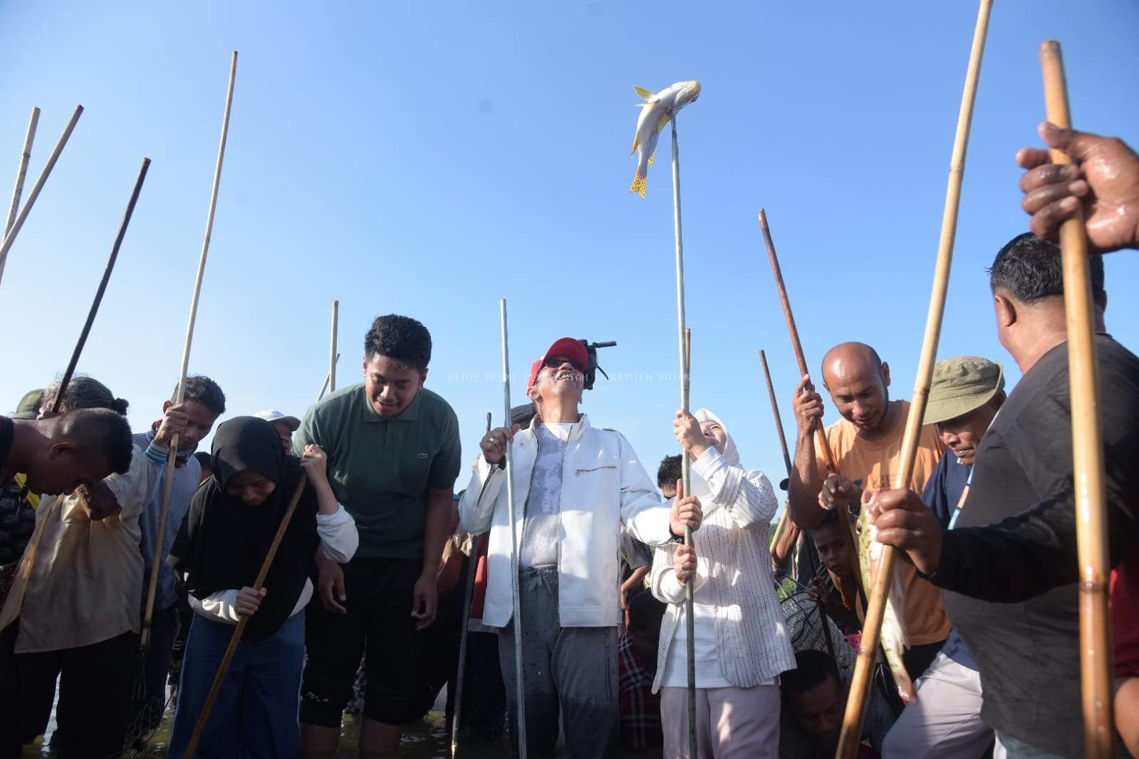 Setelah air surut Pj. Bupati Buton dengan sepatu boots dan peralatan laut surampa (tombak) yang dipegangnya siap bersama ribuan masyarakat yang tidak hanya berasal dari Desa Kondowa tetapi juga masyarakat dari desa desa lainpun ikut turun ke laut Kaombo, menangkap ikan dengan alat surampa.