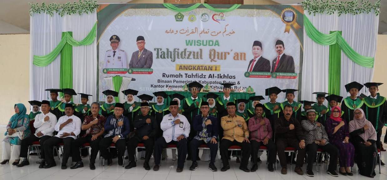 Sebanyak 52 Santri Tahfizul Quran Angkatan I Rumah Tahfizh Al Ikhlas Binaan Pemerintah Kabupaten dan Kantor Kementerian Agama Kabupaten Buton diwisuda. Wisuda yang dipimpin langsung Pj. Bupati Buton, Drs. Basiran, MSi yang didampingi Sekda Buton, Asnawi Jumaluddin, SPd, MSi, Asisten Administrasi Tata Pemerintahan dan Kesra Sekda Buton, Alimani, SSos, MSi, Kepala Kantor Kementerian Agama Kabupaten Buton, H. Mansur, SPd, MA di Gedung Wakaka, Pasarwajo, Jumat, 10 Februari 2023.