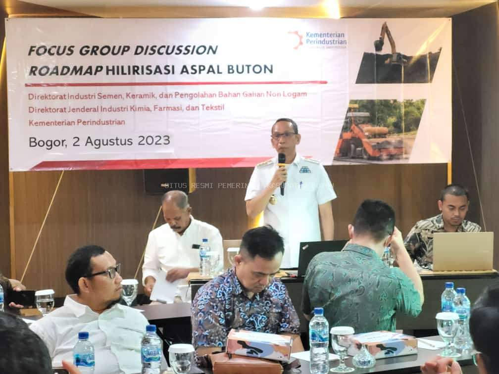 Turut hadir pada kegiatan FGD, Direktur Industri Semen, Keramik, dan Pengolahan Bahan Galian Non Logam Kemenperin Wiwik Pudjiastuti, beberapa narasumber kompeten, Ketua Aspabi, Kasatgas Aspal, beberapa perwakilan Kementerian, serta Direktur Perusahaan Aspal yang beroperasi di Kabupaten Buton.