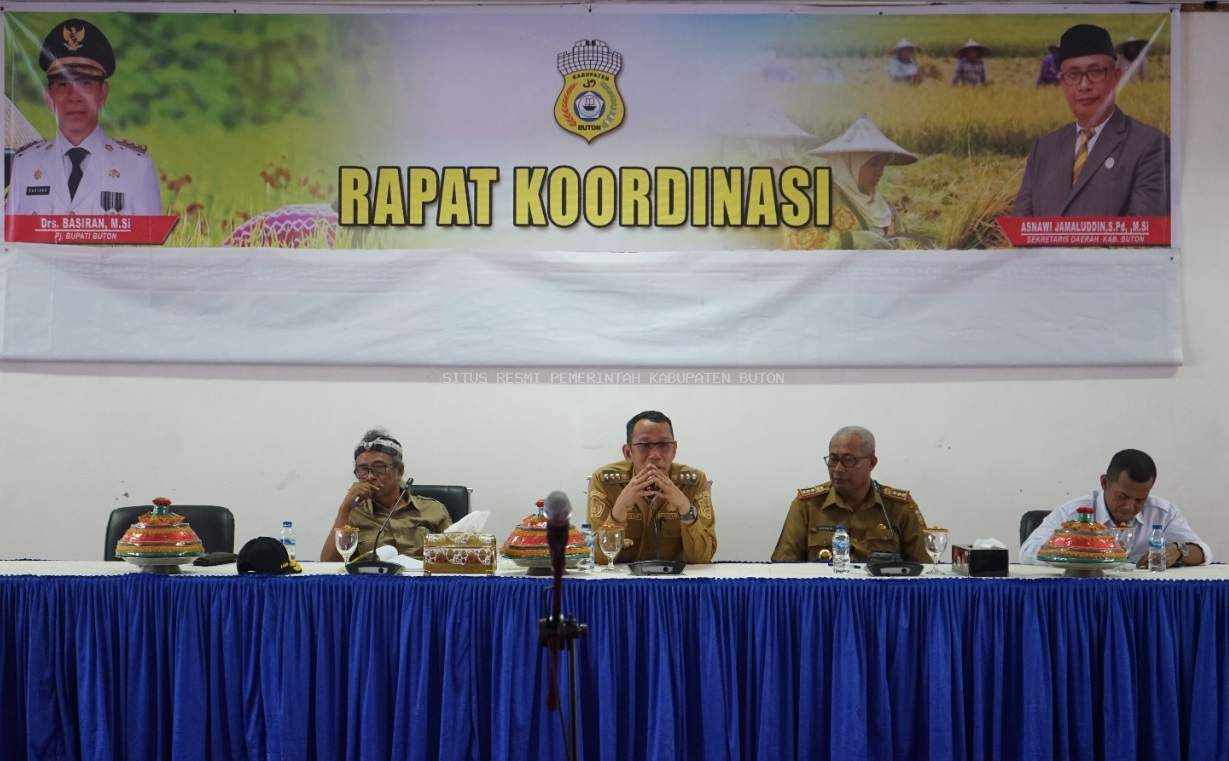 Pj Bupati Buton, Drs. Basiran, MSi memimpin Rapat Koordinasi Pemantapan Persiapan menyambut kedatangan kontingen 16 kabupaten kota yang akan mengikuti Porprov Sultra 2022. Pj. Bupati didampingi langsung Sekda Buton, Asnawi Jamaluddin, SPd, MSi, Kadis Pemuda Olahraga, La Ode Abdul Zainuddin Napa, SE, Kabag Ops Polres Buton, AKP Sumarso, SSos. Ketua KONI Kabupaten Buton, LM Syamsir Siri Ikrami, ST yang digelar di Aula Kantor Bupati Buton, Takawa, Senin, 14 November 2022.