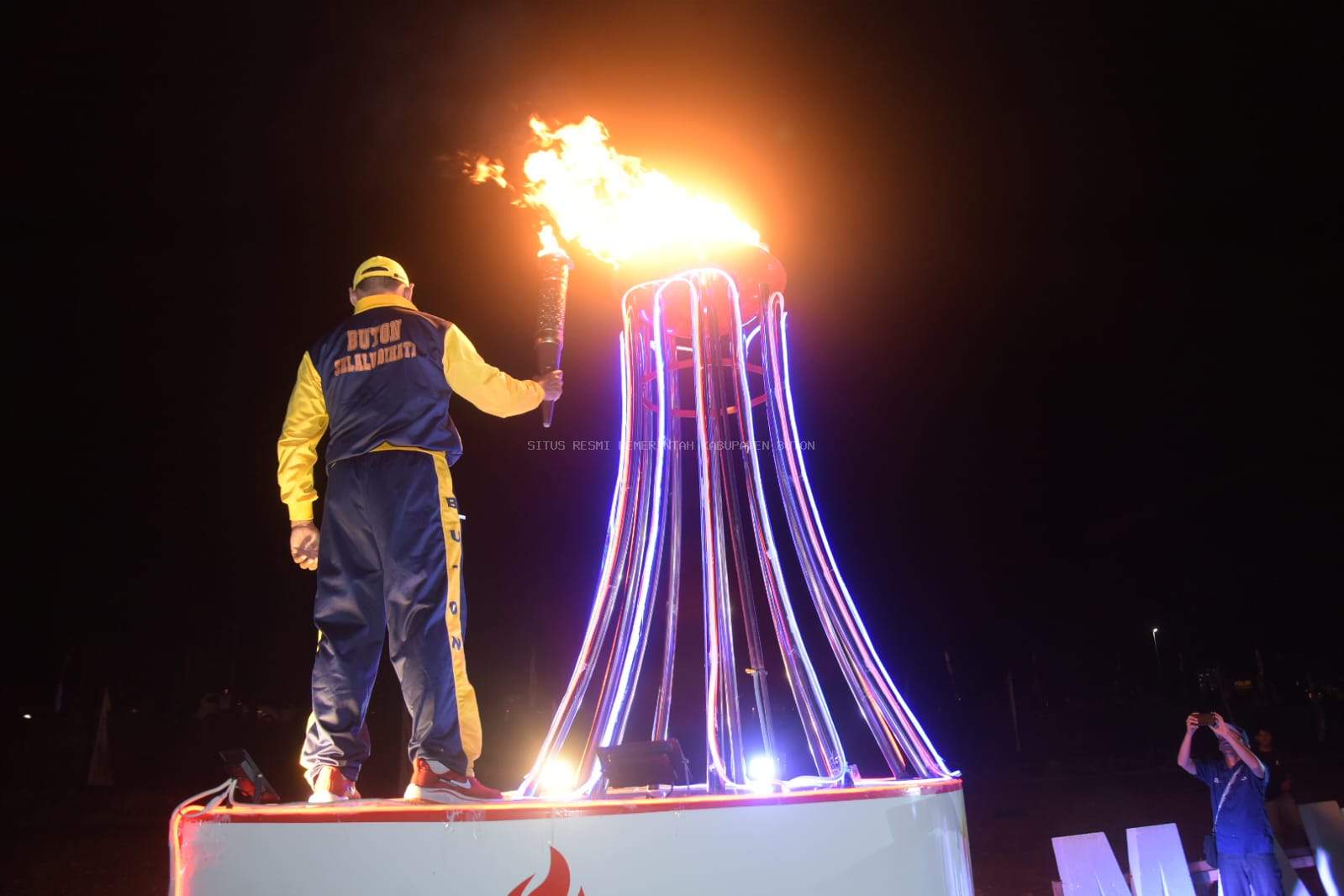 Obor diserahkan oleh atlet legendaris Dayung Indonesia asal Sulawesi Tenggara, La Anisi selanjutnya diserahkan pada Camat Kapontori la Ode Farihi. Oleh Camat Kapontori diserahkan pada Tetua Adat, Parabela Lambusango untuk di bawah di Kawasan Hutan Lambusango.