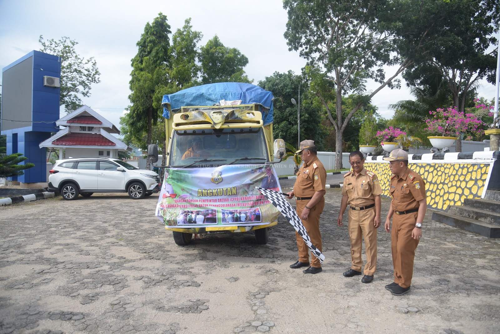 Mewakili Pj. Bupati Buton, Asisten Bidang Pemerintahan dan Kesra, Alimani, S.Sos., M.Si. melepas Angkutan Cadangan Pangan Pemerintah Daerah (CPPD) Komoditi Beras di Rumah Jabatan Bupati Buton, Pasarwajo, Senin, 20 Februari 2023.